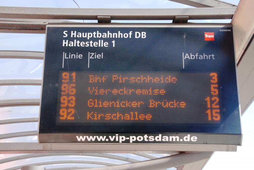 POTSDAM, 17.04.2010, Zielanzeiger für die Straßenbahnlinien in der Straßenbahnhaltestelle Hauptbahnhof