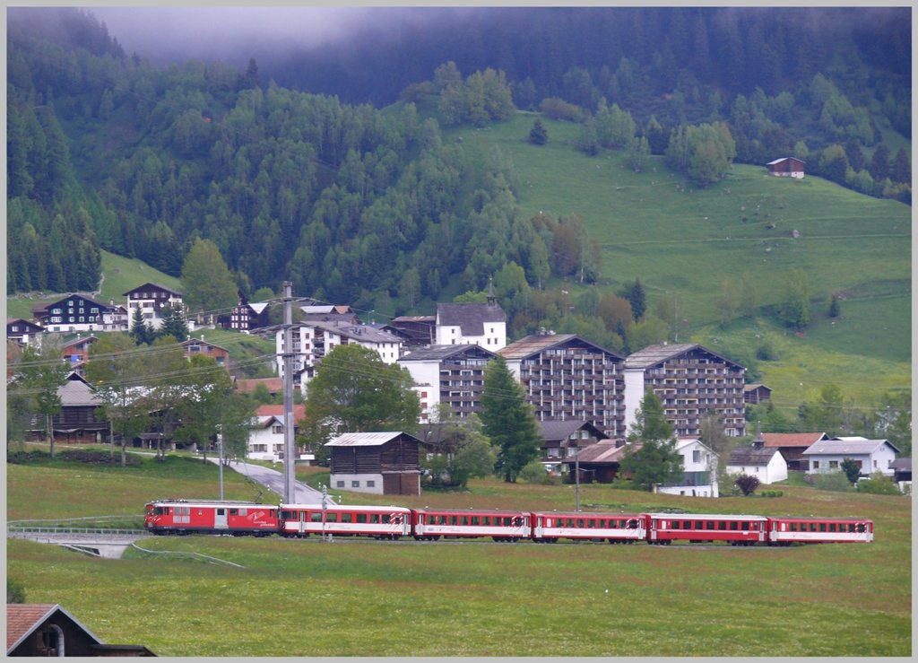 R835 mit Deh 4/4 I 22 "St.Niklaus" bei Acla da Fontauna. (03.06.2010)
