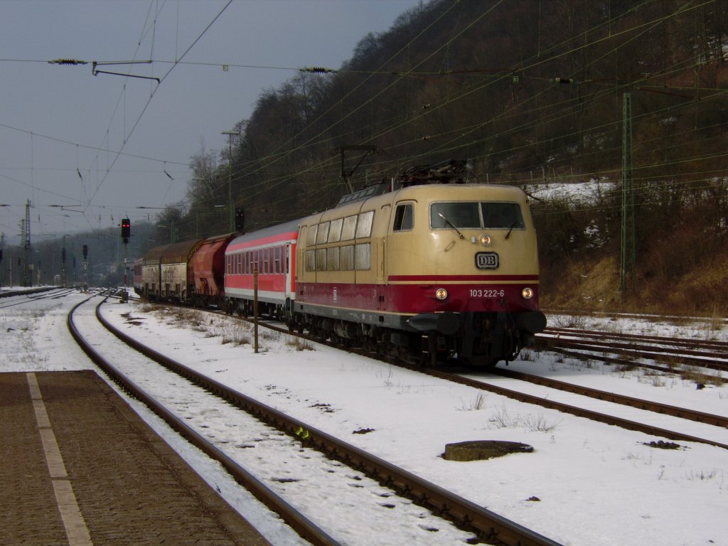 Am 11.03.2010 fuhr BR 103 222-6 mit diesem Messzug in den Bahnhof Altenbeken ein.