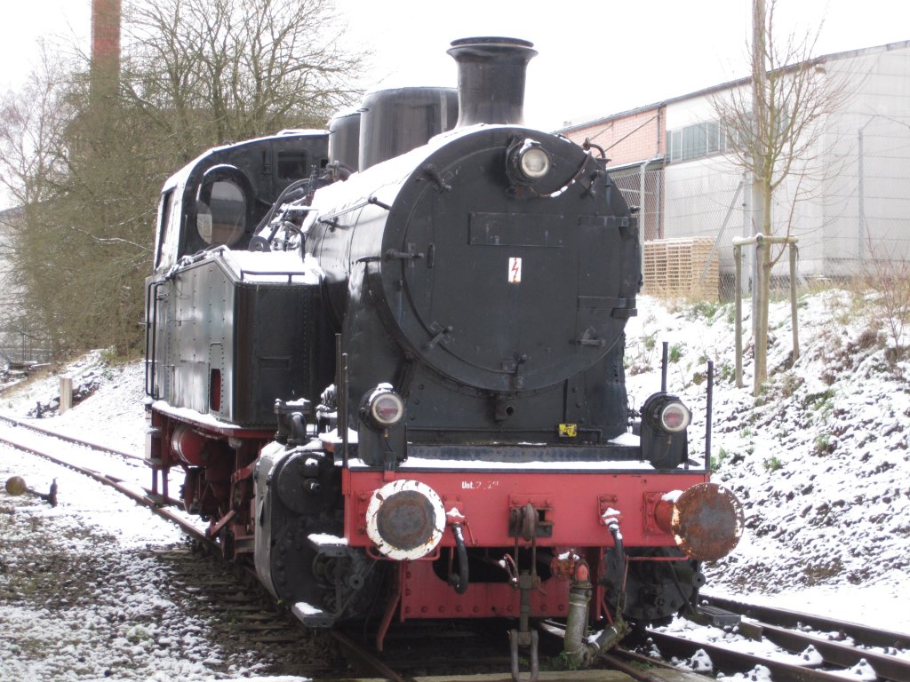 Eine alte Dampflok im Museumsgelände der Museumsbahn Losheim.
