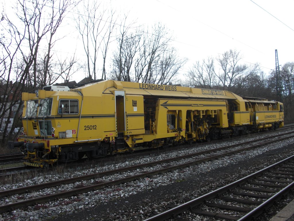 Gleisbaufahrzeug 25 012 von "vorn" im göppinger Bahnhof am 22.2.'10