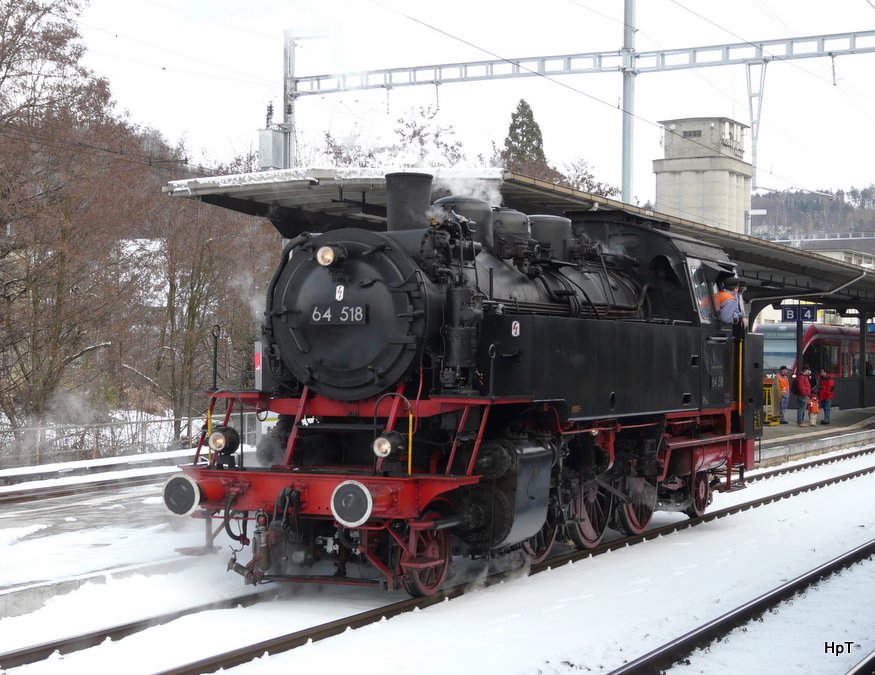 Verein Historisches Emmental - DB Dampflok 64 518 vor Fondueextrazug im Bahnhof Burgdorf am 30.01.2010