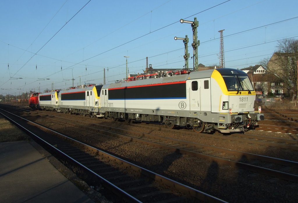 Vorne G800BB mit Aufschrifft "Siemens Prüfcenter Wegberg-Wildenrath" mit 1822,1821 und zum Schluss 1811 am 10.3.10 in Düsseldorf-Rath