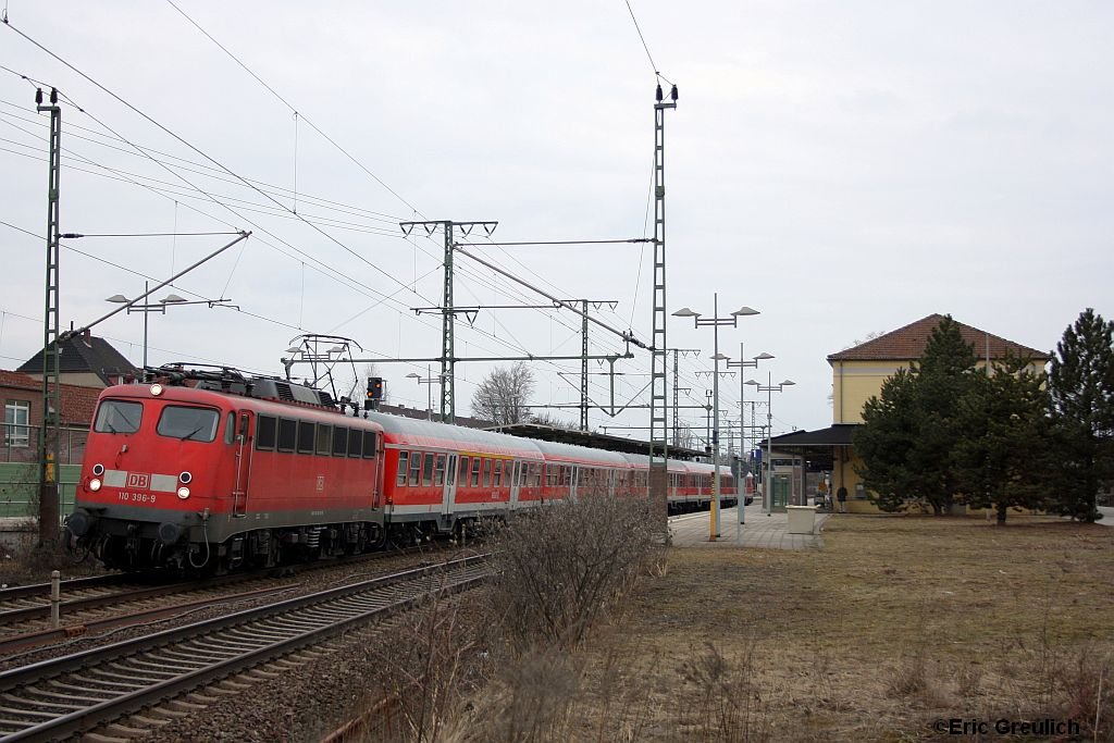 110 396 war am 12.3.10 mit einem HVZ-Verstärker-RE nach Wolfsburg unterwegs und verlässt soebend den Bahnhof Lehrte.