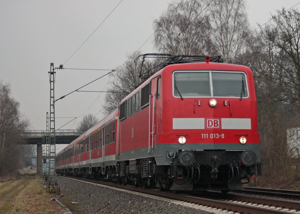 111 013-9 mit dem RE11592 (RE4 - Düsseldorf-Aachen)kurz hinter dem Bahnhof Geilenkirchen 12.3.10
