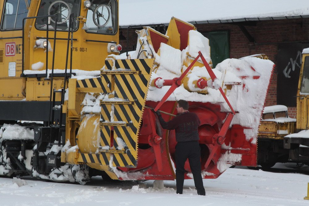 In Ludwigslust wird die Schneeschleuder 716 002 vom Eis befreit. 03.02.2010