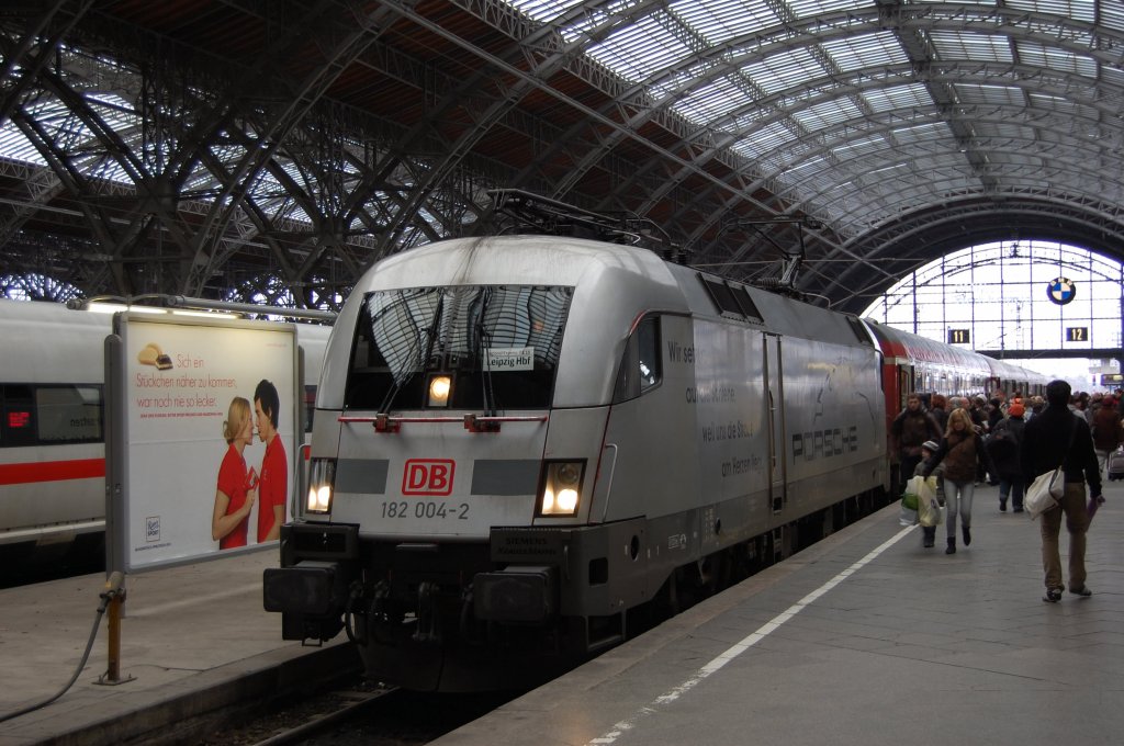 182 004 am 13.03.2010 mit einem RegionalExpress in Leipzig