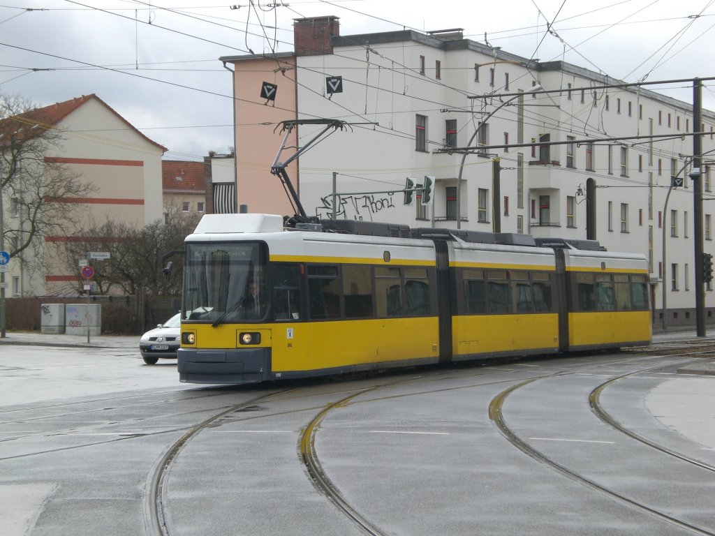 Berlin: Straßenbahnlinie 27 nach Weißensee Pasedagplatz nahe der Haltestelle Weißensee Buschallee.(14.3.2010)