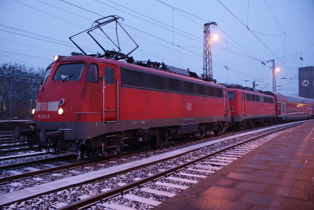 Die 115 114-1 zieht ihren Pbz mit einem MRCE Taurus für einen kurzen Halt durch Düsseldorf HBF am 17.03.2010