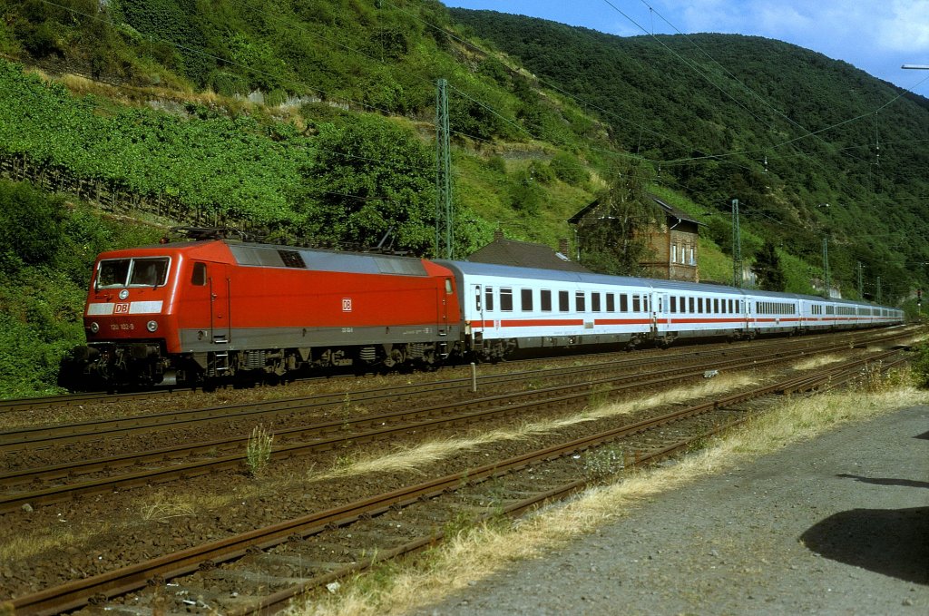 120 155 schob am 21.03.2010 den IC 1897 von Berlin Südkreuz nach Stuttgart HBF hier beim Halt in Wolfsburg um 18:11