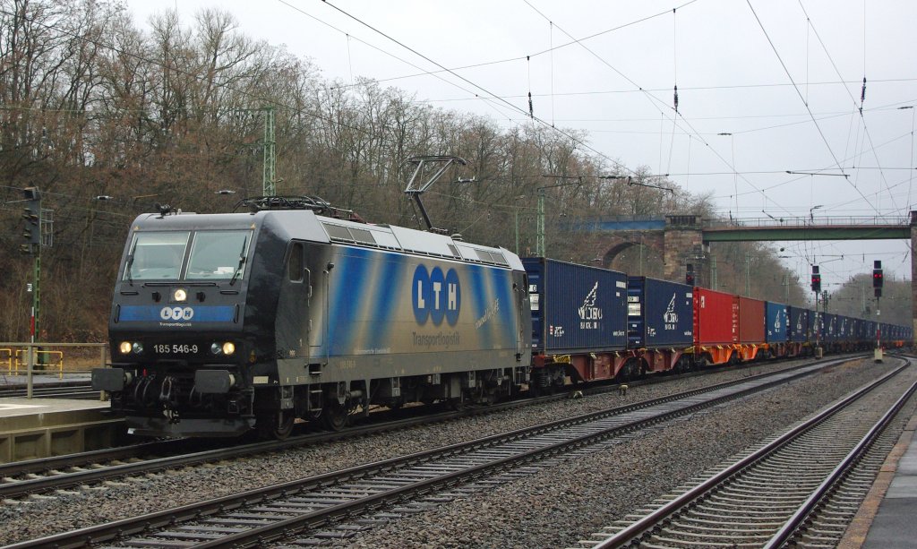 185 546-9 mit einem recht langen Containerzug in Fahrtrichtung Norden durch Eichenberg. Aufgenommen am 21.03.2010. Und als Beigabe...