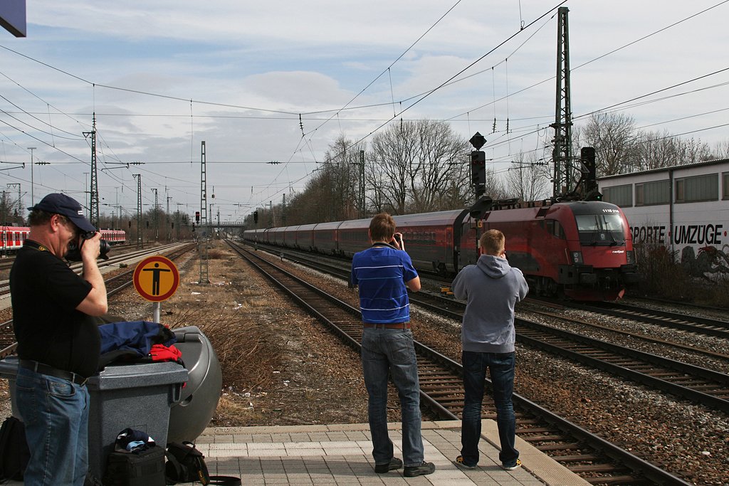 Für uns Bayern sind die Railjets schon lange langweilig, aber unsere norddeutschen Gästen machen gerne noch ein Foto vom Rj und werden dabei von Helmut und mir fotografiert.