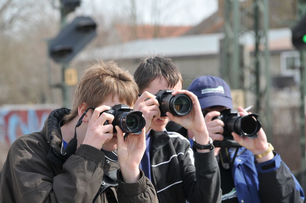 Viel Material für unsere "Nordlichter". Ständig klickten die Verschlüsse der Cams. Nur einer schien schon alle Objekte der Begierde zu haben: Dennis auf der "anderen" Jagd. (Trudering, 20.03.2010).