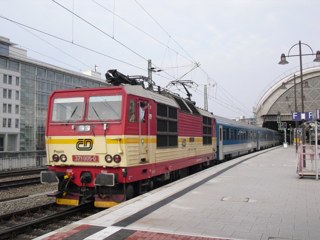 CD 372 011-7 lässt erahnen welche Last diese Lok am Haken hat, das Ende ist in der Rechtskurve hinten im Bild (Dresden Hauptbahnhof 27.03.2010)