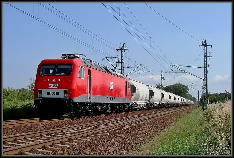 MEG 801 vor einem Zementzugumleiter aus Rüdersdorf, kurz vor Stralsund. am 01.07.09