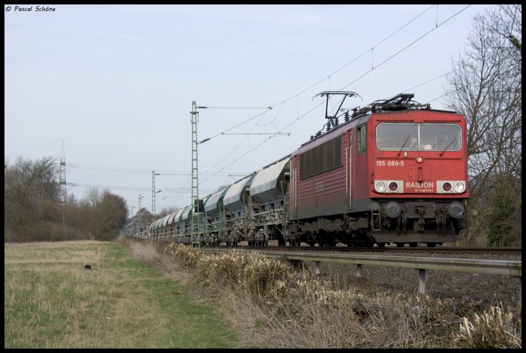 Und Güterzüge dürfen an so einem herrlichen Frühlingstag auch nicht fehlen. Hier mal eine Lok der Baureihe 155 nämlich die 080.