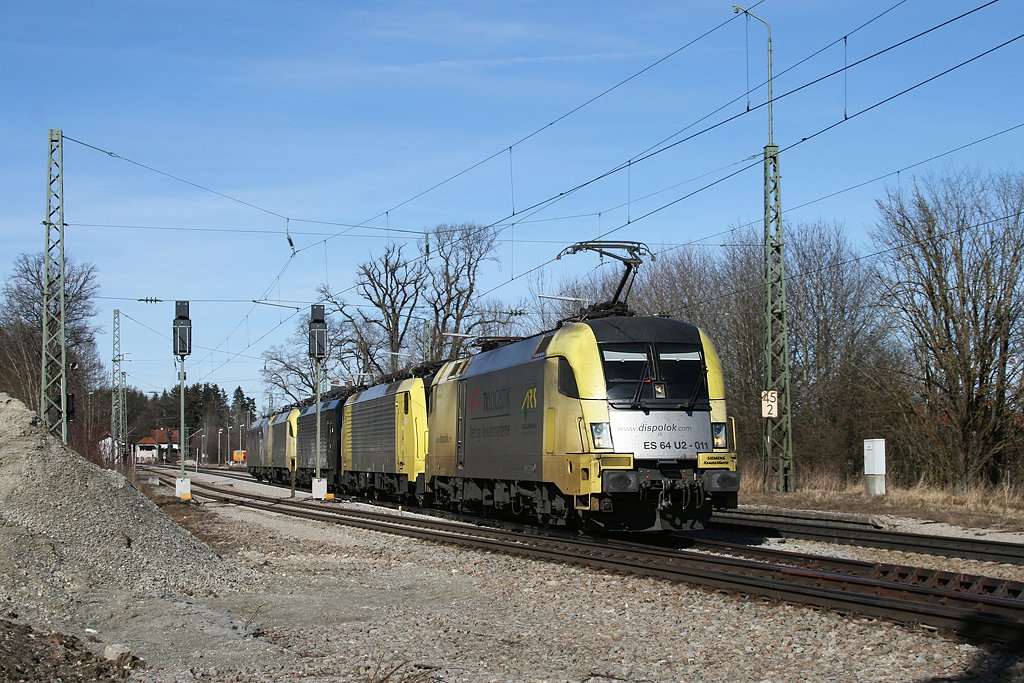 ES 64 U2 - 095 von Siemens Dispolok auf dem Weg in den Hamburger Hafen. das Bild entstand kurz vor der sogenannten "Hausbrucher Kurve", dem Abzweig auf die Hafenbahn. 02.03.2010