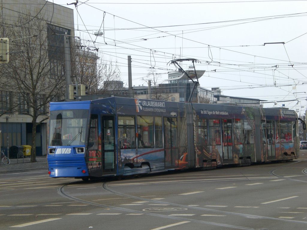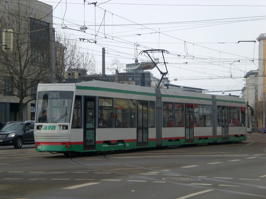 Magdeburg: Straßenbahnlinie 6 nach Diesdorf an der Haltestelle Allee-Center.(18.2.2010)