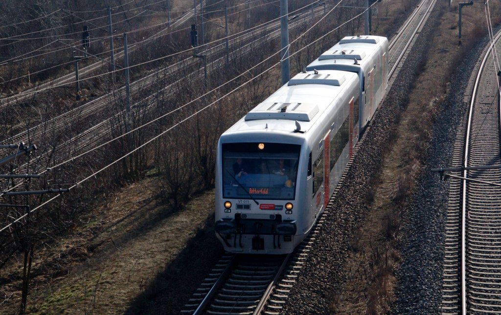 VT 011 und ein weiterer 650er der MRB erreichen am 03.03.10 Holzweissig. Ziel ist Bitterfeld.