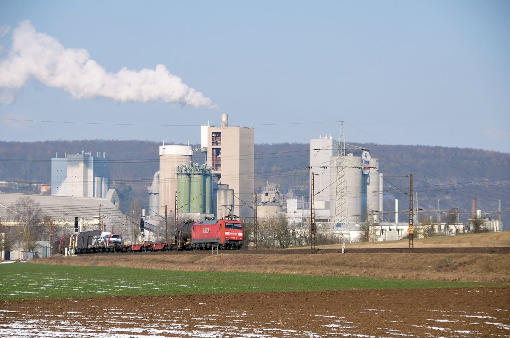 eine 185er mit einem Autozug bei Retzbach aus Richtung Würzburg kommend am 22.03.2010