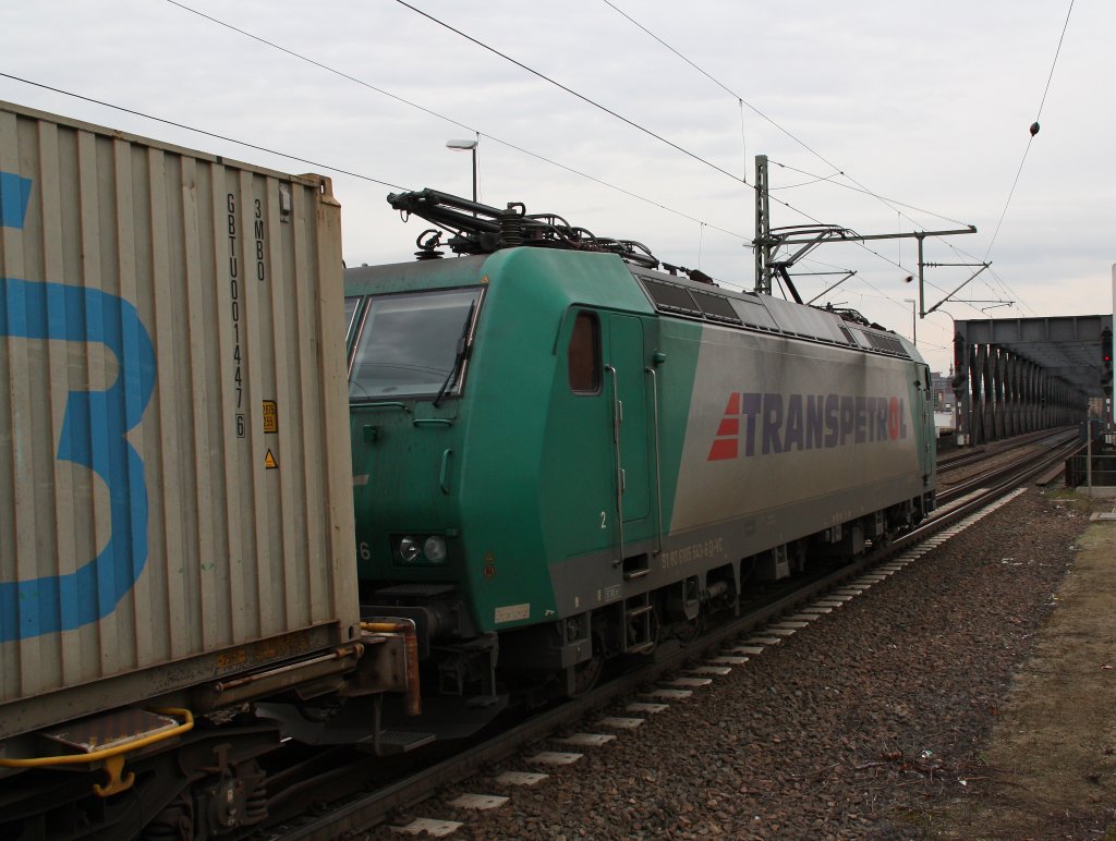 Railpool 185 677-2 im Dienst der ITL mit einem Transcereales Getreidezug in Magdeburg Diesdorf. Der Zug kam aus Richtung Braunschweig, fotografiert am 31.03.2010.