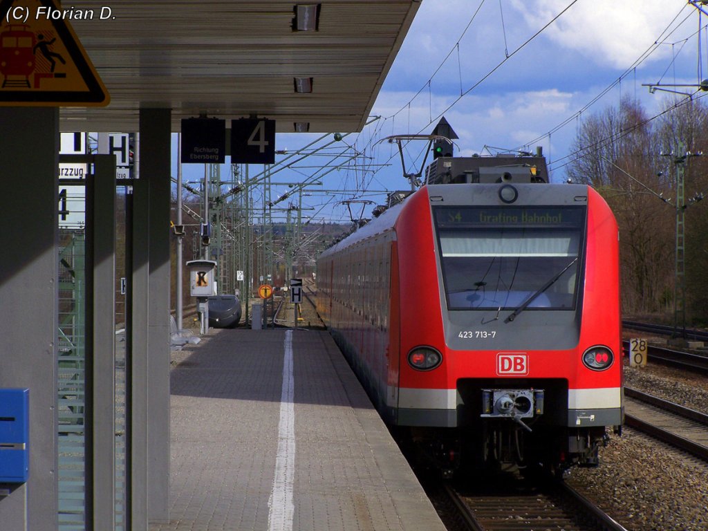 423 213/713 verlässt gemeinsam mit einer Schwestereinheit die S-bahnstation Zorneding auf dem Weg nach Grafing Bahnhof. 27.03.2010