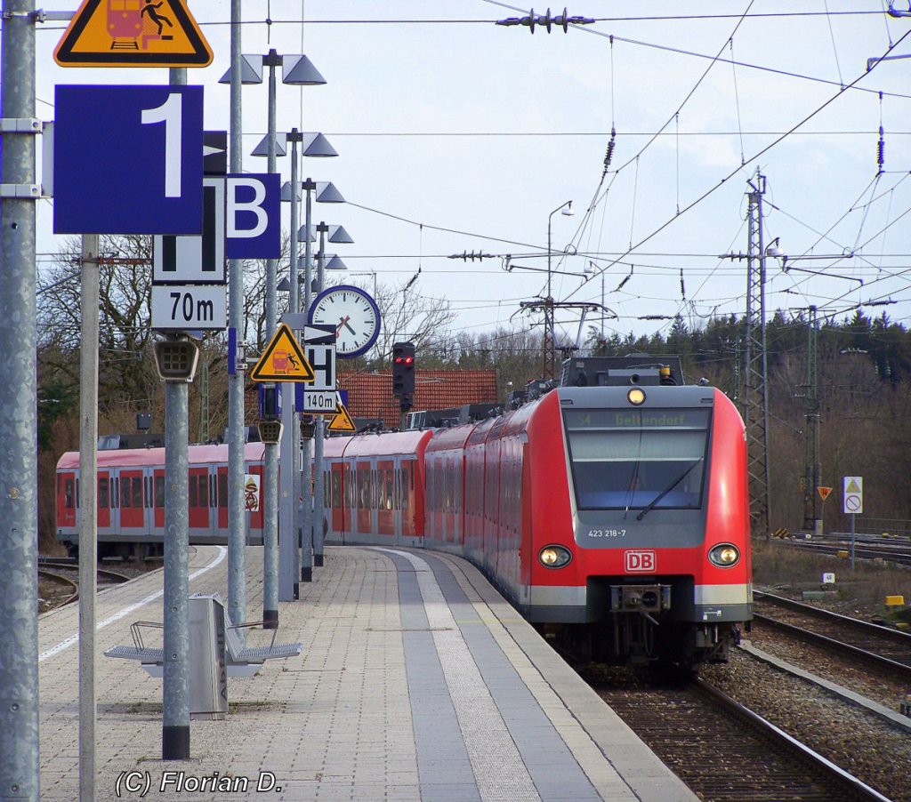 Hier rollt das Paar aus 423 218/718 und 423 202/702 bestehend, in Grafing Bahnhof ein. Nach kurzem Halt geht es weiter nach Geltendorf. 27.03.2010