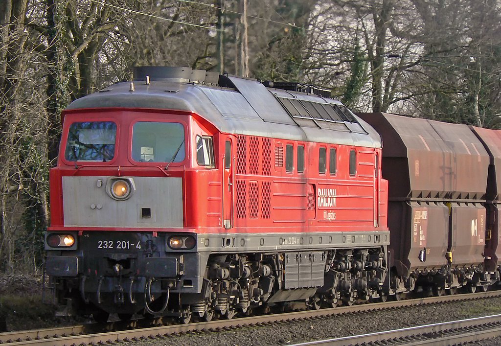 MEG 318 zieht am 02.03.10 den Kohlenzug Dessau - Profen durch Bitterfeld.