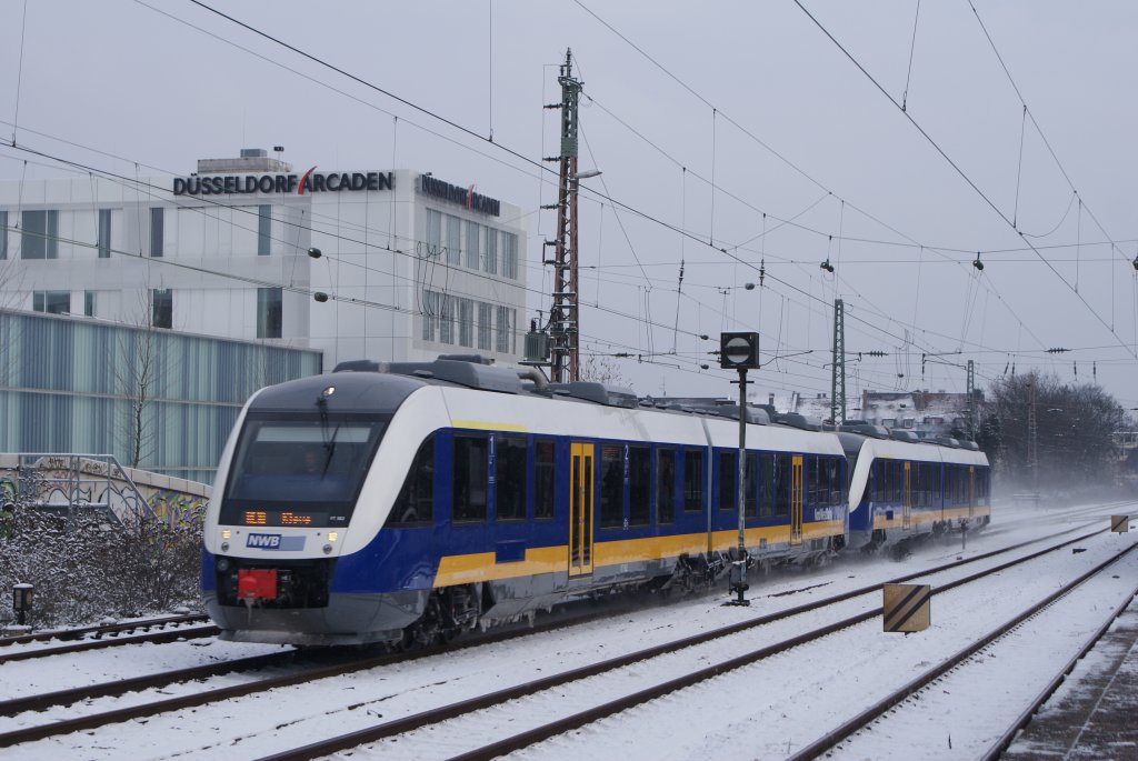 Zwei Triebzüge der Nordwestbahn fuhren am 04.01.2010 als RE 10 nach Kleve.Hier in Düsseldorf Bilk am 04.01.2010