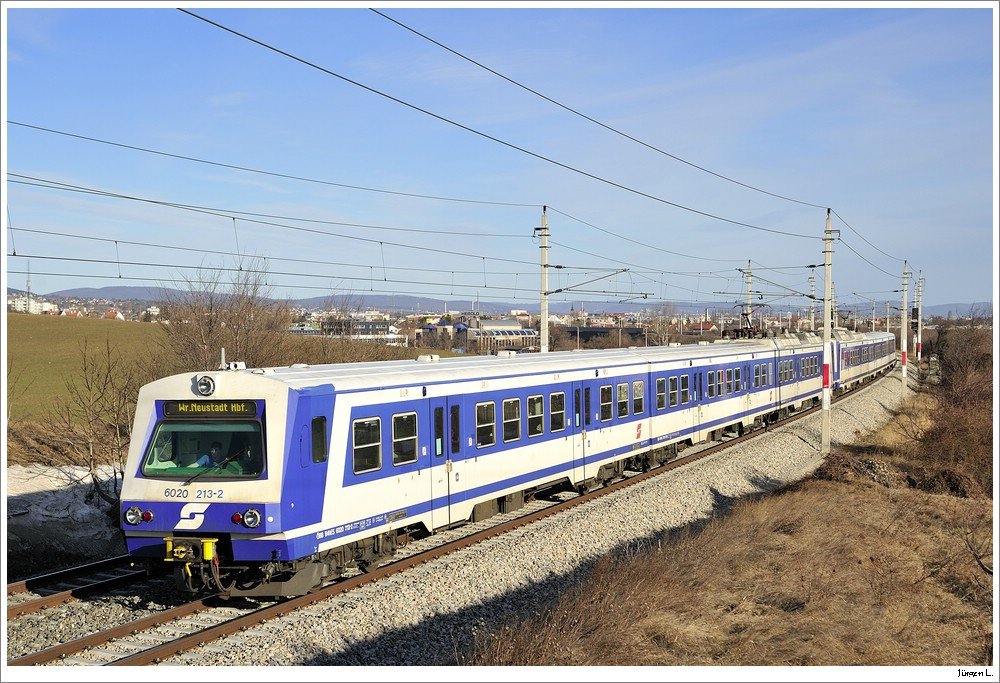 Immer wieder nett: die Reihe 4020/6020. Hier der 6020.213 unterwegs als S9 in Richtung Wr. Neustadt; Mödling, 27.02.2010.