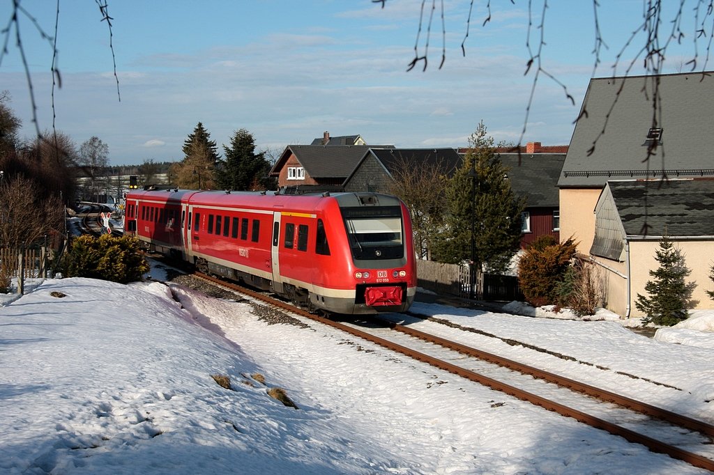 612 093/593 durchfährt den Bf Pöllwitz, an der KBS546, als RE3643 nach Regensburg, am 05.03.2010.