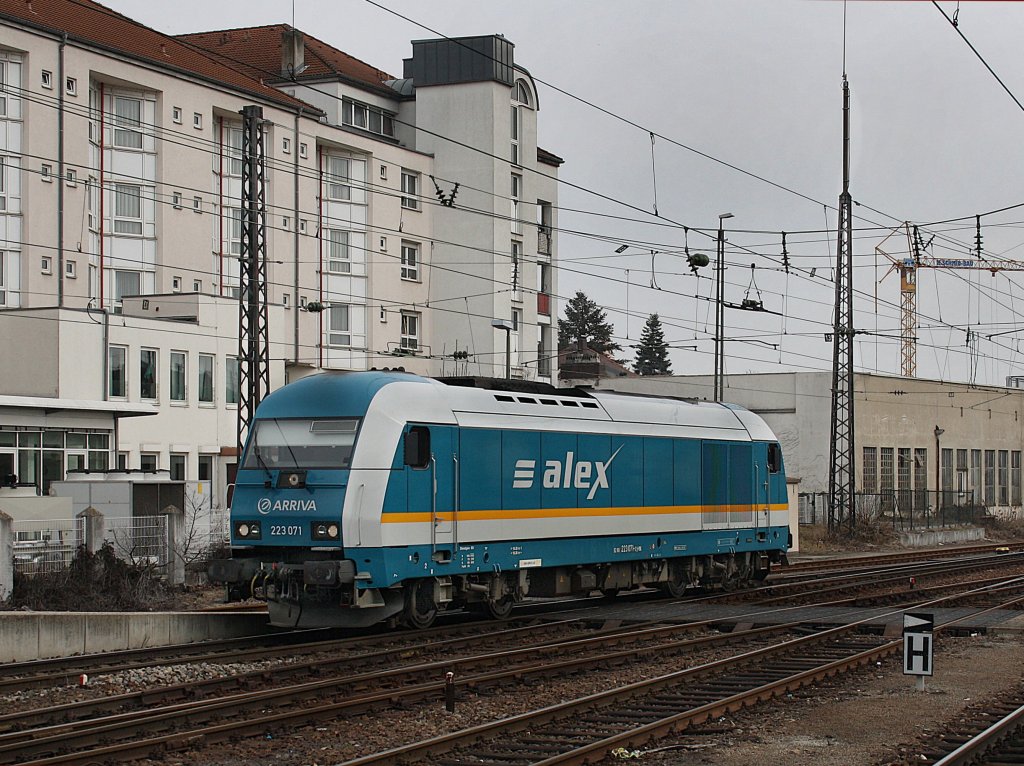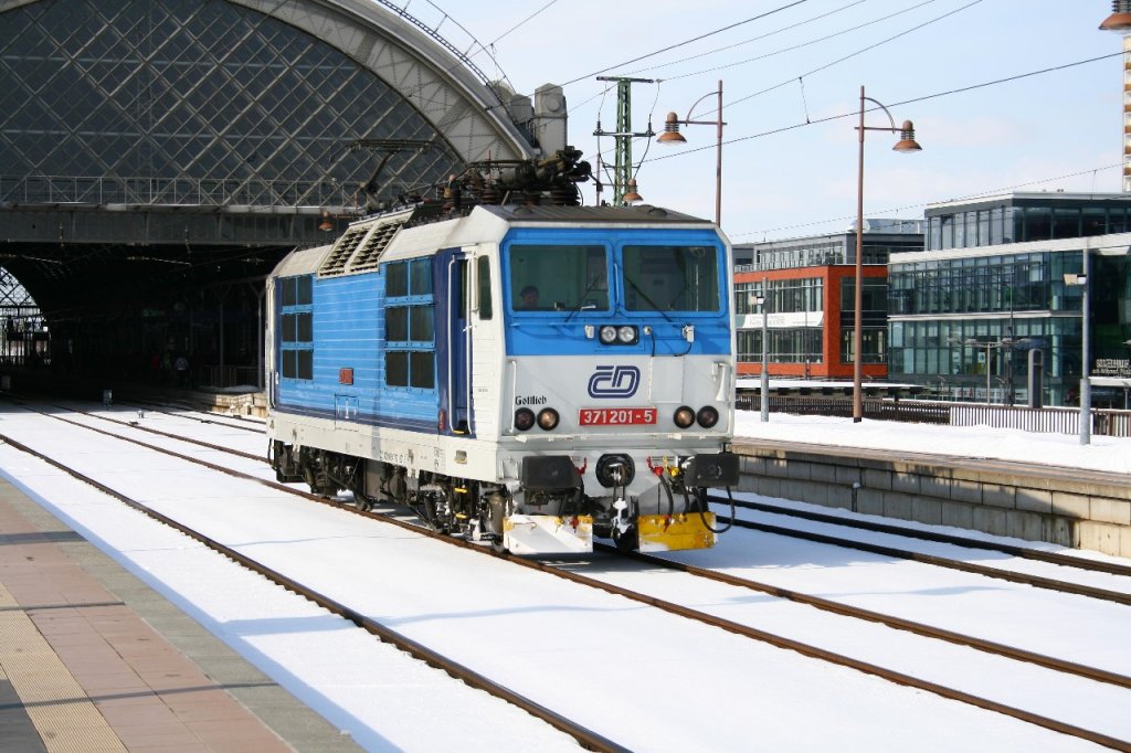 Nachschuss auf den Messzug, den 120 502 am 02.03.10 aus dem Bahnhof Bitterfeld Richtung Leipzig zieht.