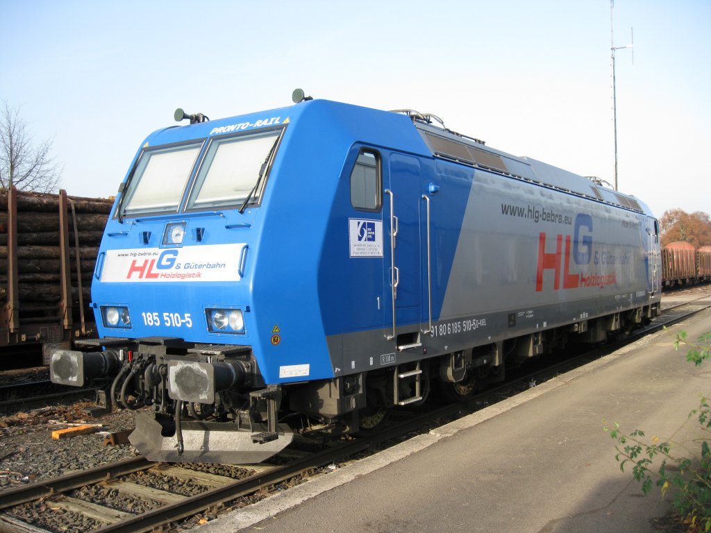 185 510 - 5 der HLG (Holzlogistik & Güterverkehr Bebra)am 20.11.2009 abgestellt im Holzverladebereich des Güterbahnhofs Gießen.