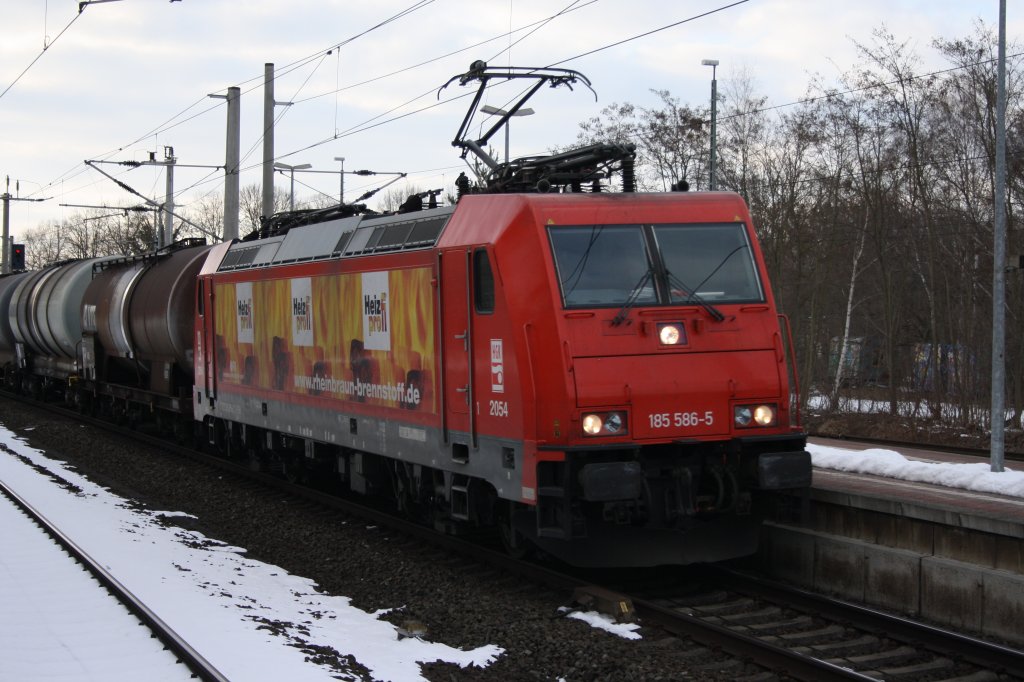 185 586 kachelte mit einem Kesselwagenzug am 08.03.2010 durch Gifhorn in Richtung Berlin.