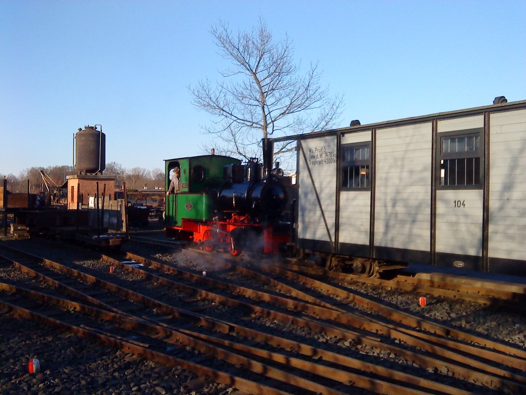 Im späten Nachmittag macht sich ein Feldbahnzug auf den Weg in den Rebstockpark in Frankfurt.7.3.10.