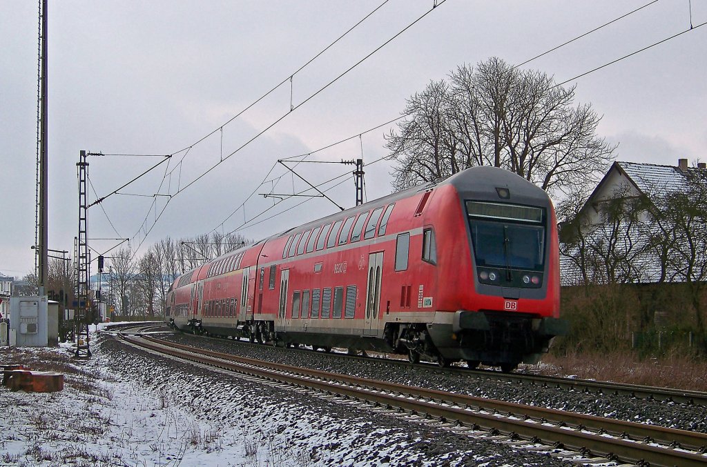 am 9.3.10 - ..auf Strecke in Richtung Brügge - Hagen , der Regio-Zug RB 52 ....