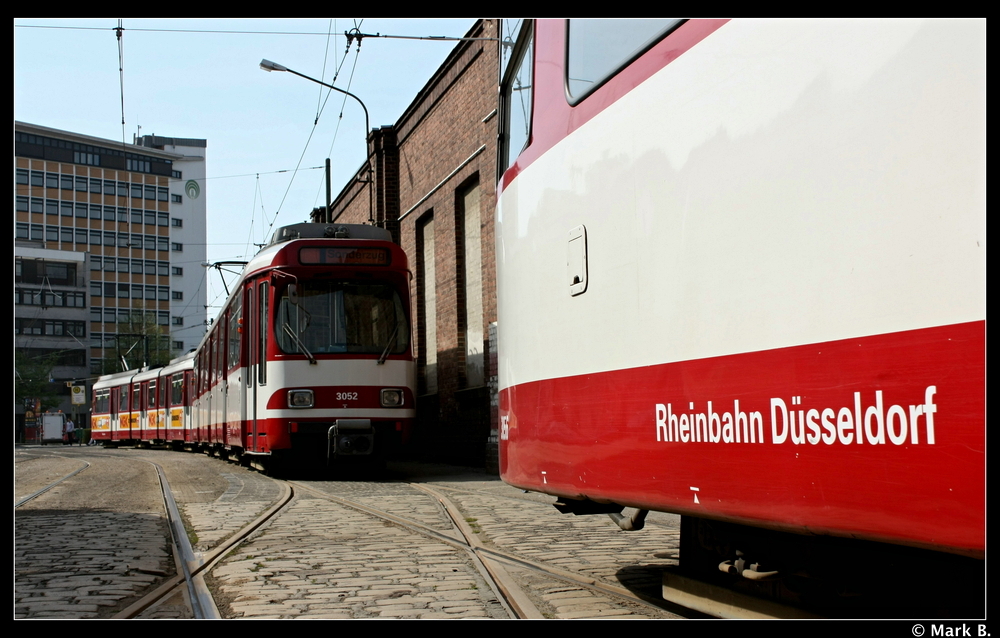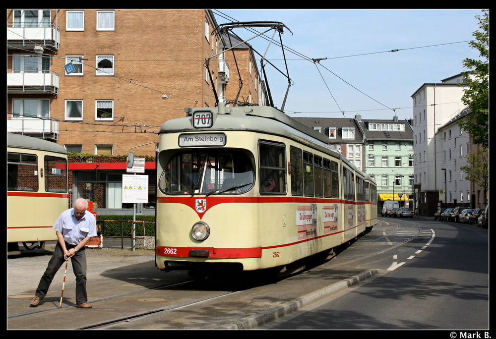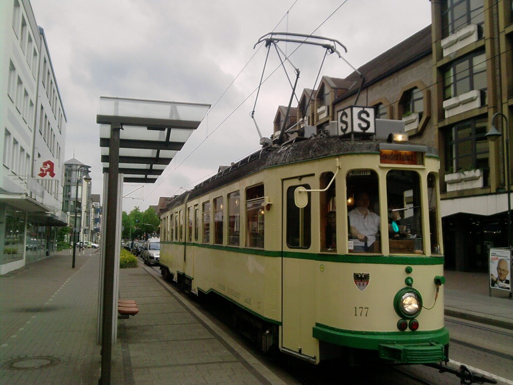 Alter Historischer Gelenktriebwagen der Duisburger Verkehrsgesellschaft.
