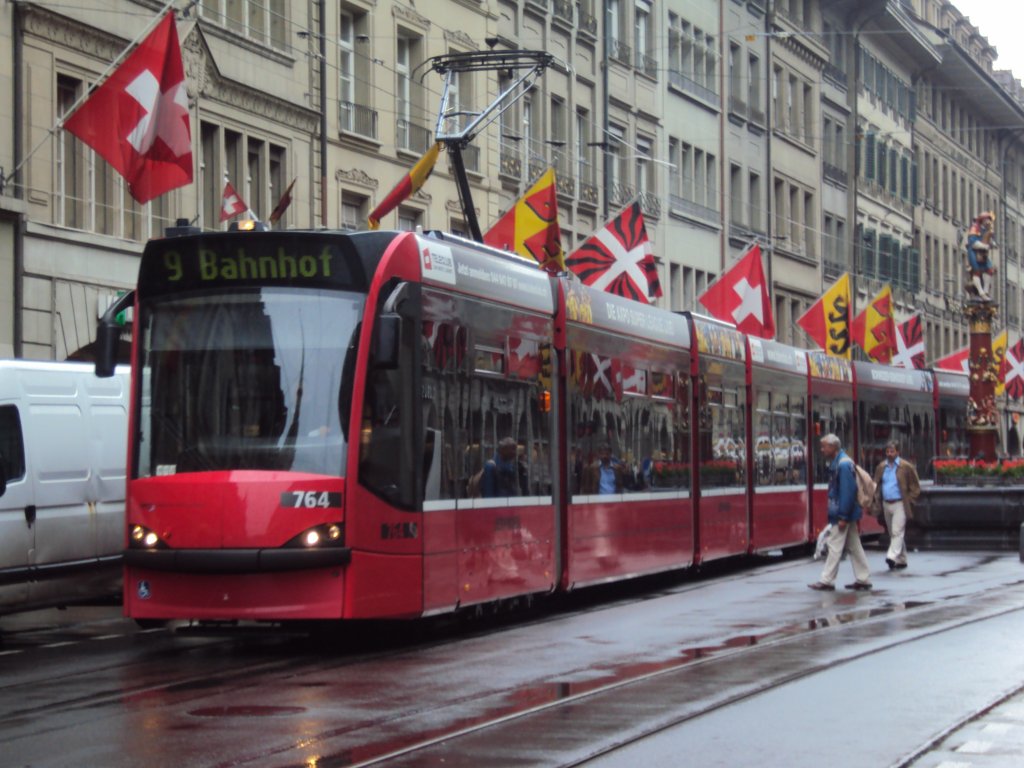 Bernmobil Combino Be 6/8 764 zwischen der Haltestelle Bärenplatz und Bahnhof. 01.05.2010