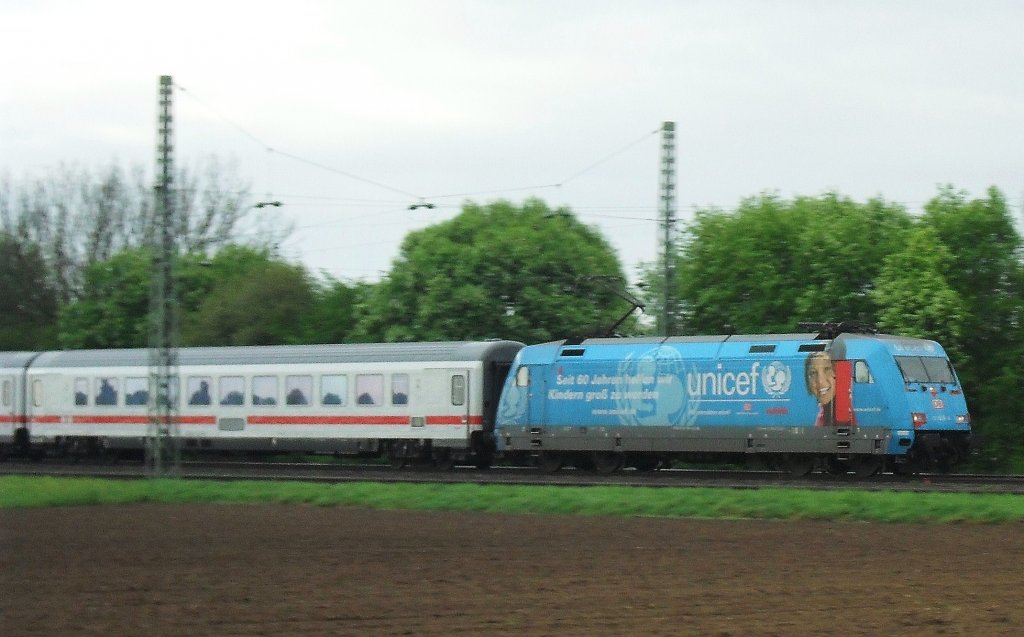 Hier ist 101 016 -4 Unicef am IC in Mangolding am 01.05.2010. Bild 01