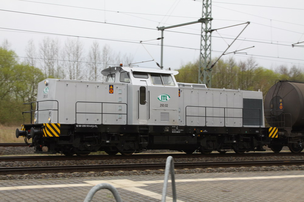 ITL 293.02 zieht ihre Kesselwaggons durch Hagenow Land. 20.04.2010