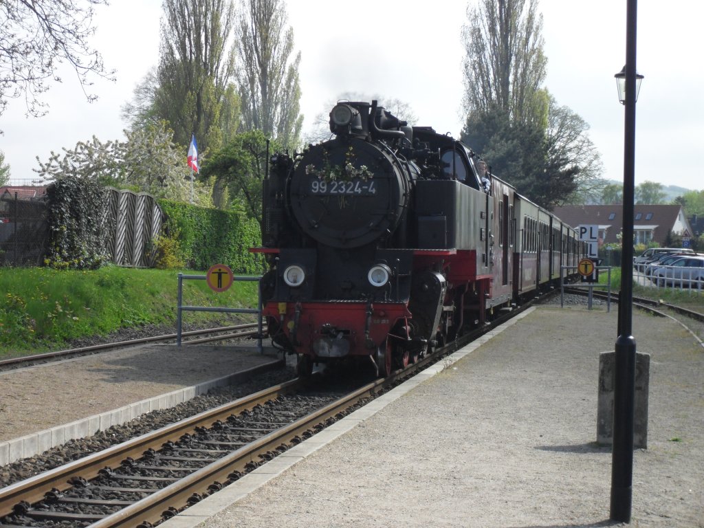 99 2322 zum Herrentag ein bischen geschmückt auf Weg zum Wasser fassen in Kühlungsborn West am 13.5.10