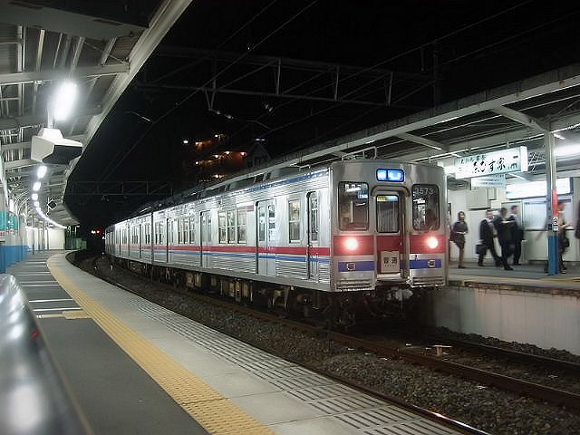 Keisei-Konzern, Serie 3600: 1982-1989 wurden 54 Wagen dieser Serie geliefert; sie bilden heute 6 8-Wagenzüge und einen 6-Wagenzug. Bild: 8-Wagenzug mit Frontwagen 3658 kommt bei Keisei Sekiya entgegen, 29.November 2009. (Aufnahme durch verglaste Führerstandrückwand eines Gegenzugs)