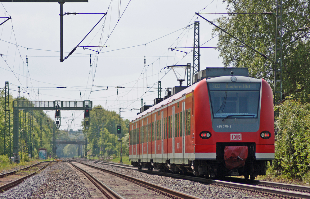 425 075-9 als RB11069 nach Aachen bei der Ausfahrt in Geilenkirchen, 16.5.10