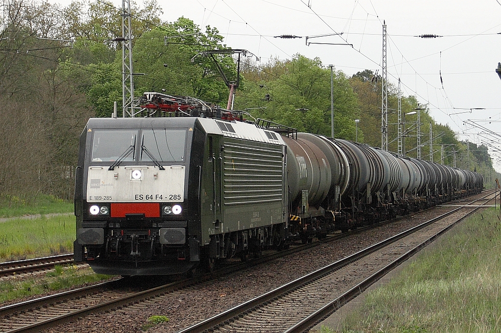 MRCE ES 64 F4-285 (189 285) durchfährt am 14.05.2010 mit einem Kesselwagenzug den ehem. Bhf Chorin