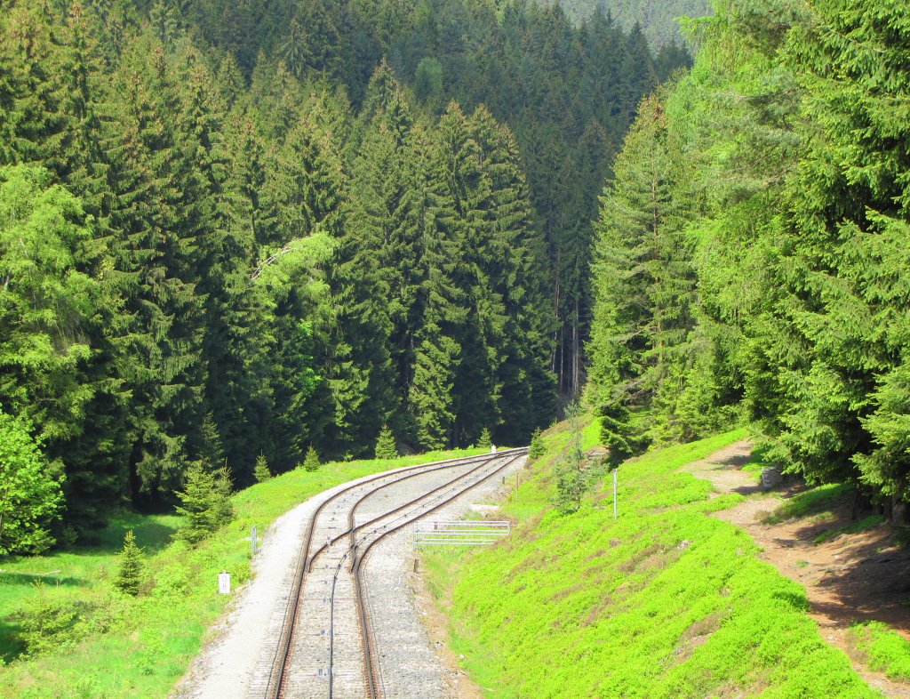 Ausweichstelle der Oberweißbacher Bergbahn zwischen Lichtenhain und Obstfelderschmiede, die mittels zwei Abt’scher Weichen bewältigt wird; 22.05.2010