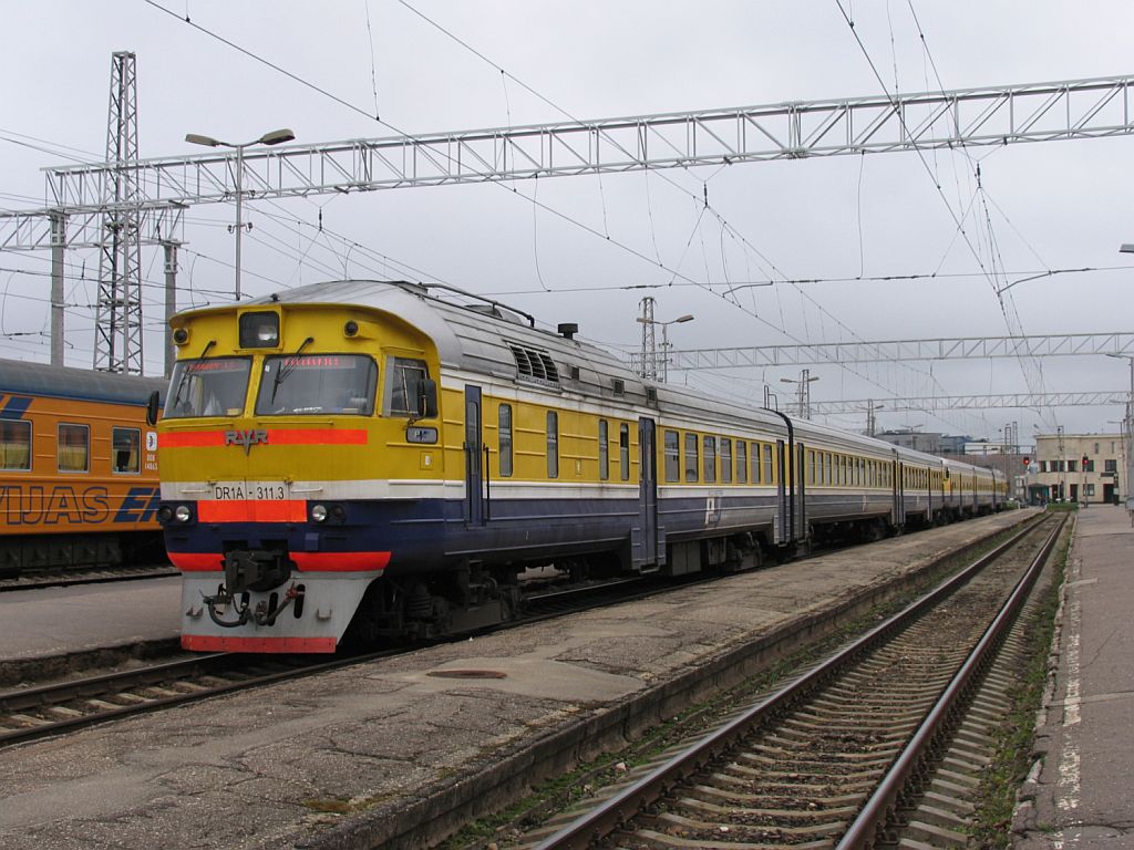 DR1A-311.3 und DR1A-290 mit Regionalzug 614RJ Riga Pasazieru-Krustpils auf Bahnhof Riga Pasazieru am 4-5-2010.