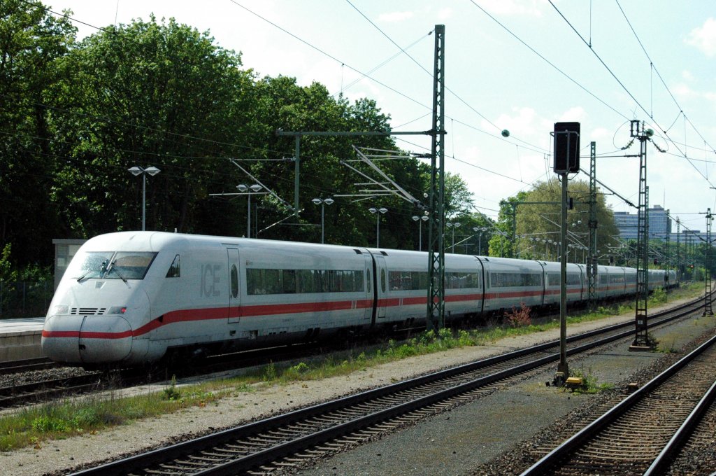 ICE aus München bei der Durchfahrt durch den Bahnhof Nürnberg-Frankenstadion, am 23.05.2010.