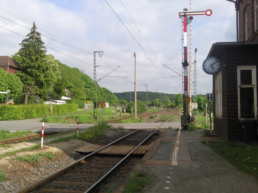 Der Haltepunkt Creidlitz in der Nähe von Coburg. Wenn man sich das Saate Grün auf den Gleisen so anschaut denkt man nicht das ab 2017 vieleicht ICE über diese Strecke rollen. 21.5.2010