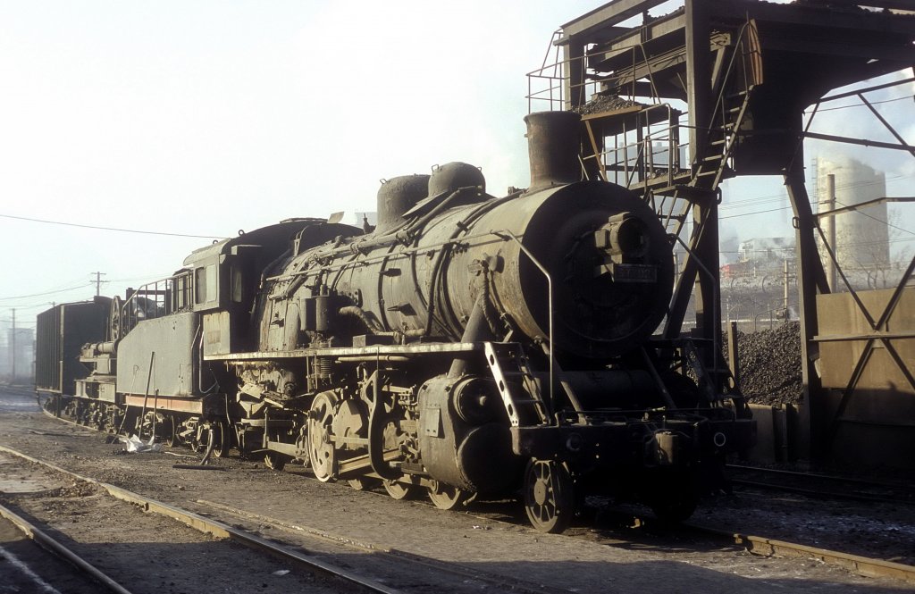 Keisei-Konzern, Altbauwagen: Früher waren die Staatsbahnfahrzeuge dunkelbraun, die meisten Privatbahnfahrzeuge in Zweiton-Grün gestrichen, wie dieser alte Zug des Keisei-Konzerns mit Endwagen 513. Vorkriegsbauart, modernisiert in den 1960er Jahren, bis 1980 im Einsatz. Bild: Einfahrt in Tokyo-Nippori, 31.Januar 1980.