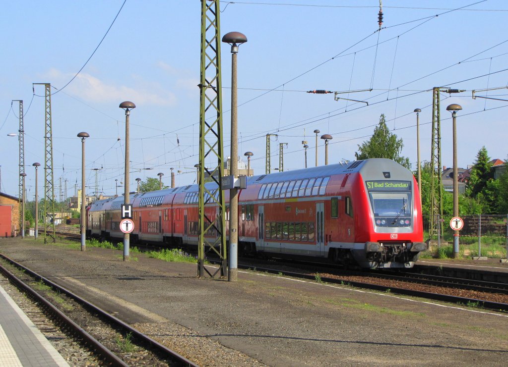 Hier ein RE50 von Leipzig Hbf. nach Dresden Hbf., bei der Ausfahrt am 14.5.2010 aus Leipzig Hbf.